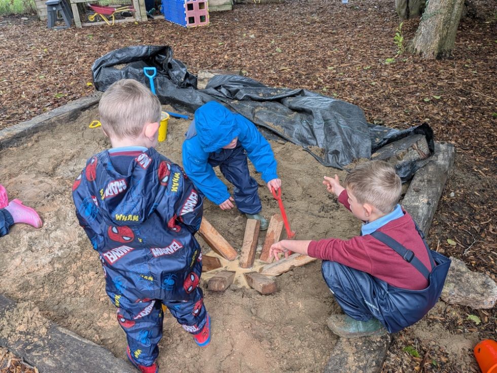 Being outdoors encourages children to be imaginative and think creatively. Many children are more relaxed outside and this allows for more liberating and spontaneous play. There is also greater space for movement, children can be noisy and messy and the environment provides many ‘sparks’ for creativity.