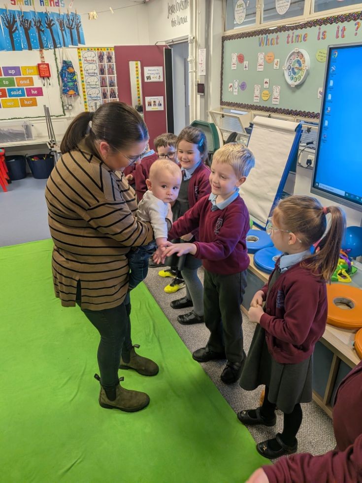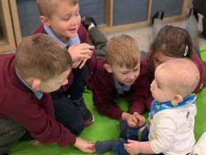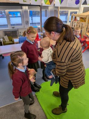 We enjoyed seeing George for his second visit - he has grown so much! His neck has got stronger, he has more hair and he has cut 2 teeth. We discussed why babies cry and then sang songs to George which made him smile lots. We also tried some new toys with him and found out he has very good concentration.
